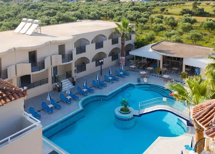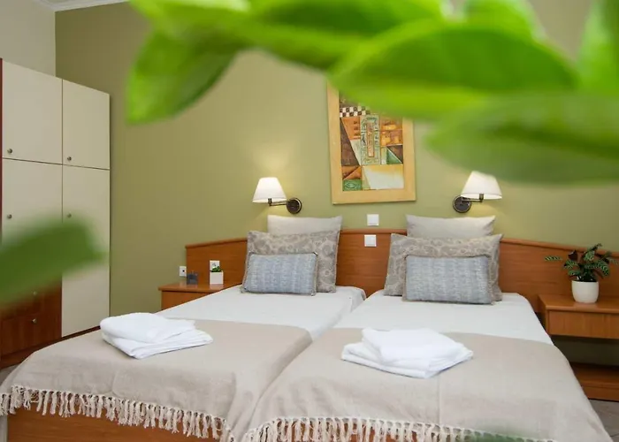 This 2-star aparthotel is placed about 0.5 km from Dionysios Solomos airport and around a 15-minute ride from such cultural venues as Museum of D Solomos and Eminent People of Zakynthos. The accommodation offers proximity to such natural sights as Zakynthos Marine Park (3.2 km) and Crystal Beach (4 km). The hotel is nearly a 15-minute drive from Water Village.