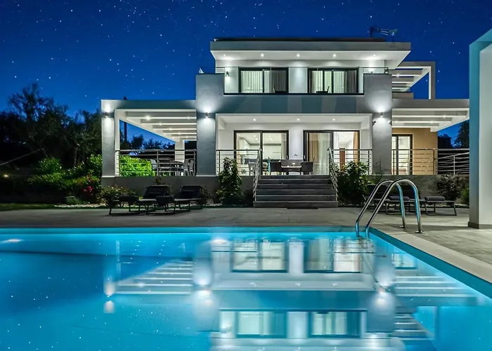 The 3-bedroom Johnny'S White Luxury Villa is located 4.4 km from Venetian Castle and provides bowling for active guests. Situated about 10 km away from the Dionysios Solomos airport, the villa offers rental bicycles for added fun.